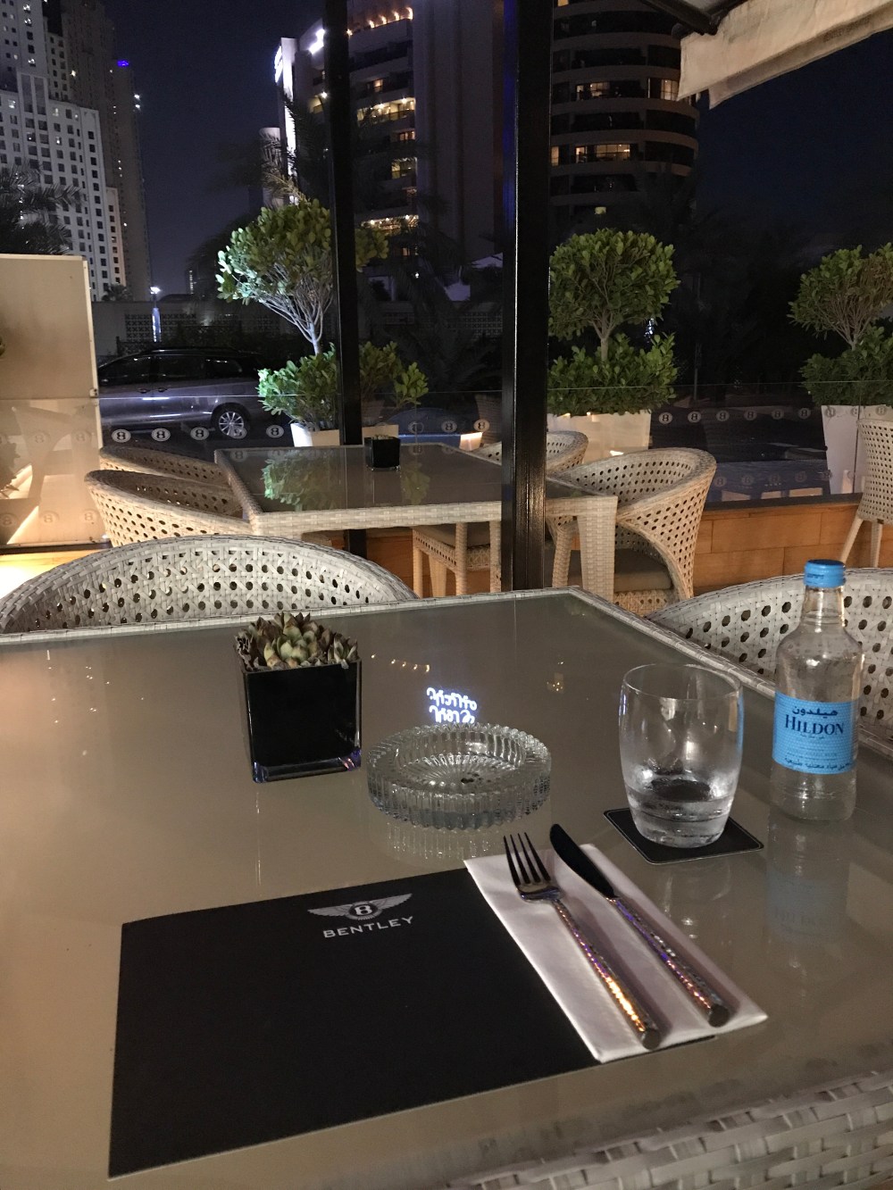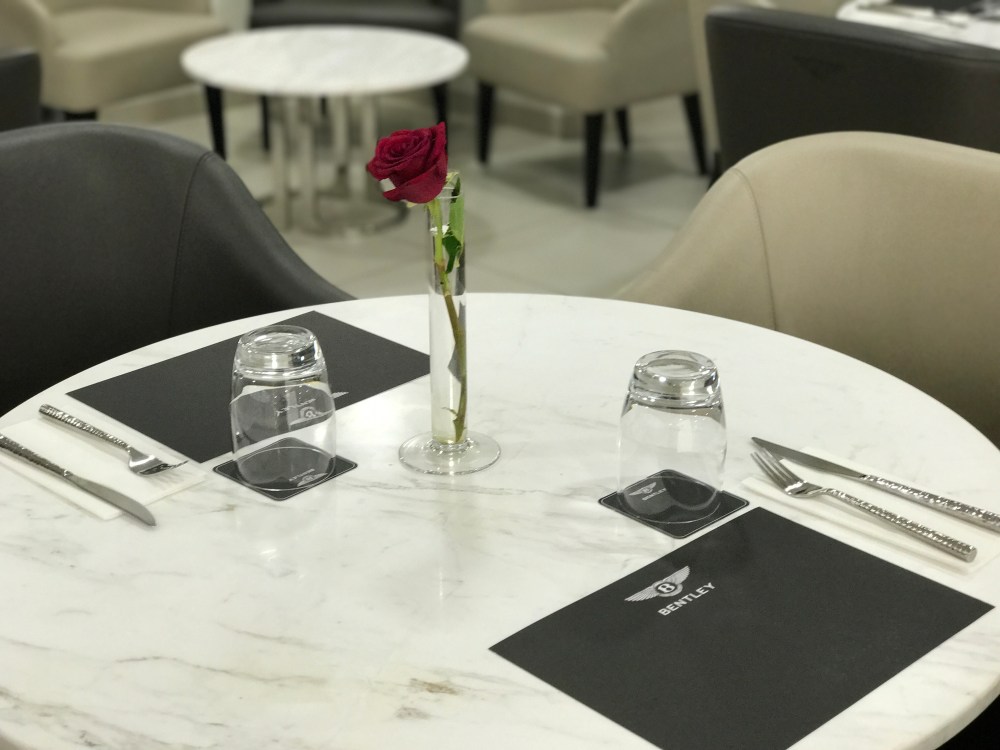 Cost wise, it’s a little on the high end, but the food was quite delicious. I had the turkey club sandwich and a water and spent about 100AED which is the normal price for the marina area restaurants. On ladies night they give you free coffee! Parking is limited to the street so it’s going to be tough. Otherwise, it’s a fabulous experience and I would definitely bring clients here or a few friends who are fans of the Bentley brand.