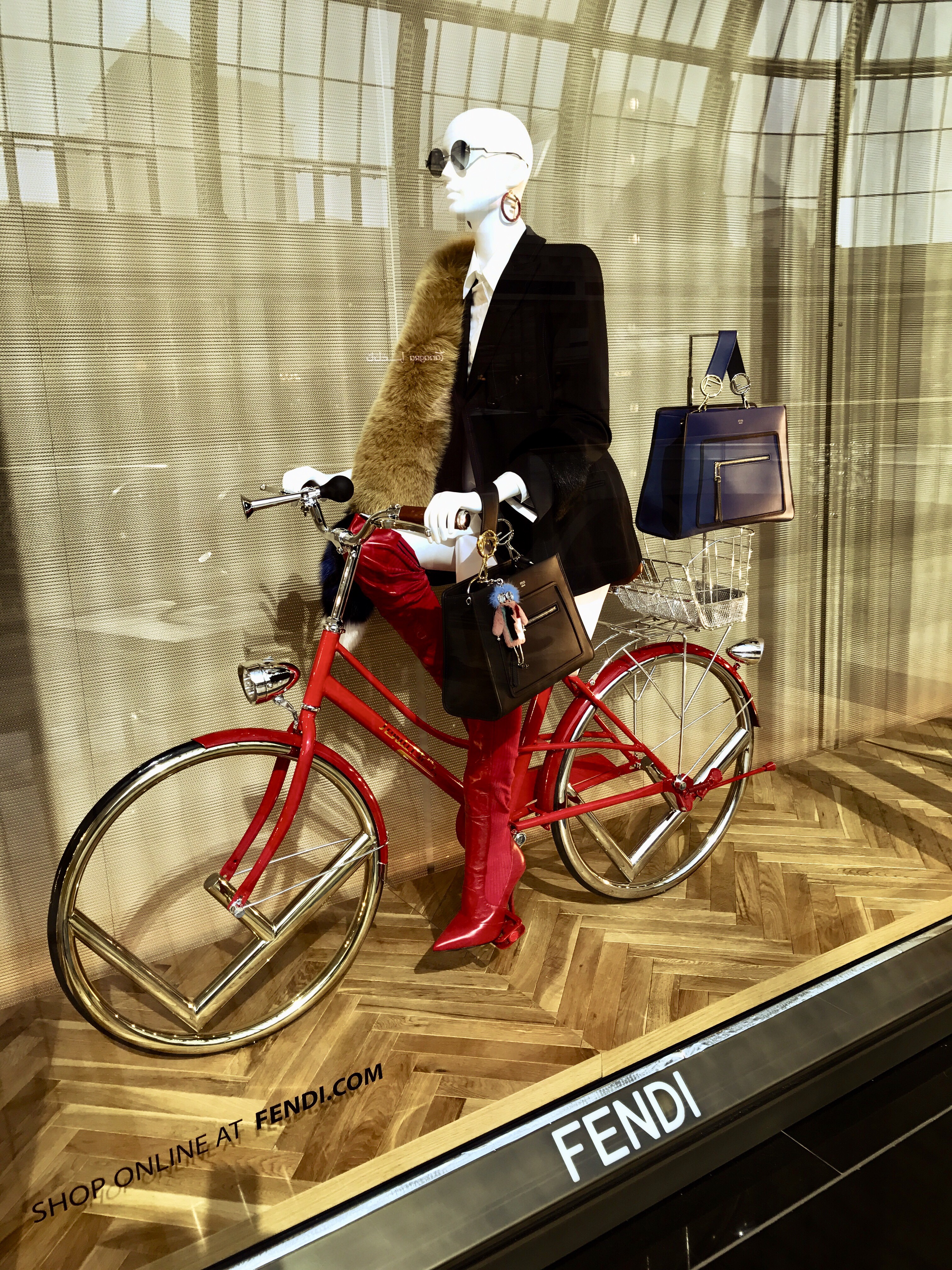 All I can say is yesss! Come through red boots, red bike, and every purse! I think my ultimate favorite piece out of each of these designed windows is the red purse with Fendi monogram strap. As always I will be on the lookout for new windows. Until the next time…
