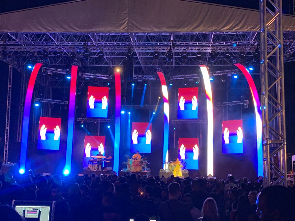 This fabulous lady knows how to put on a performance! She had a live band with a graphically appealing show. Rocking a 70s inspired, shimmery gold bell bottom jumper, she danced and sang her heart out. It was truly an awesome performance.